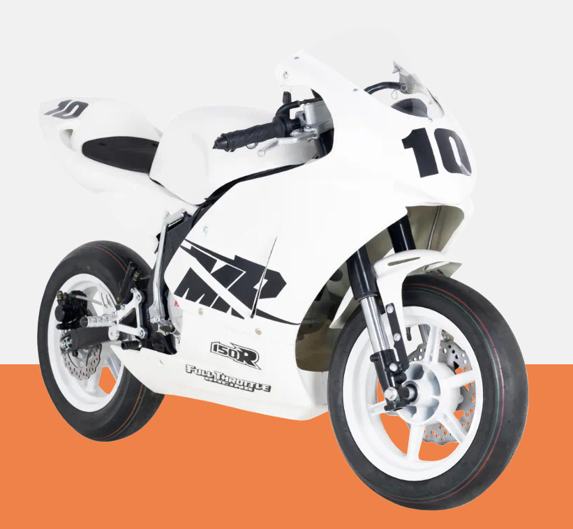 Już nic nie stoi na przeszkodzie! Trenuj bez względu na porę roku, wielkość toru czy budżet. KAYO MINI GP 150 to sprawdzony mini motocykl wyścigowy do podnoszenia swoich umiejętności i startów w zawodach. Mocny silnik z 5-biegową skrzynią, wydajne hamulce i 12″ koła z przodu i z tyłu – a na to wszystko sportowa pozycja. Zapomnij o wymówkach, wskocz na KAYO MINI GP 150!
