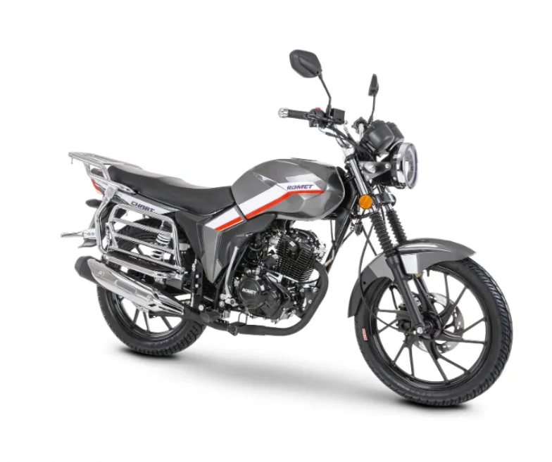 Model Chart 125. Jednocylindrowa jednostka napędowa 4T, chłodzona powietrzem, ma pojemność 125 ccm. Co najważniejsze, model spełnia normę Euro 5. Ponadto Romet Chart – w przeciwieństwie do starszych modeli – ma w pełni elektryczny rozruch. Gdy do kompletu dodamy widelec teleskopowy z przodu i amortyzatory olejowe z tyłu, a także przedni hamulec tarczowy oraz tylny bębnowy – komfort jazdy mamy gwarantowany. Model dostępny jest w trzech wersjach kolorystycznych: białym, szarym oraz czarnym.
